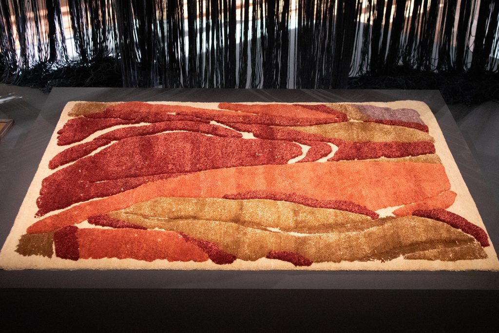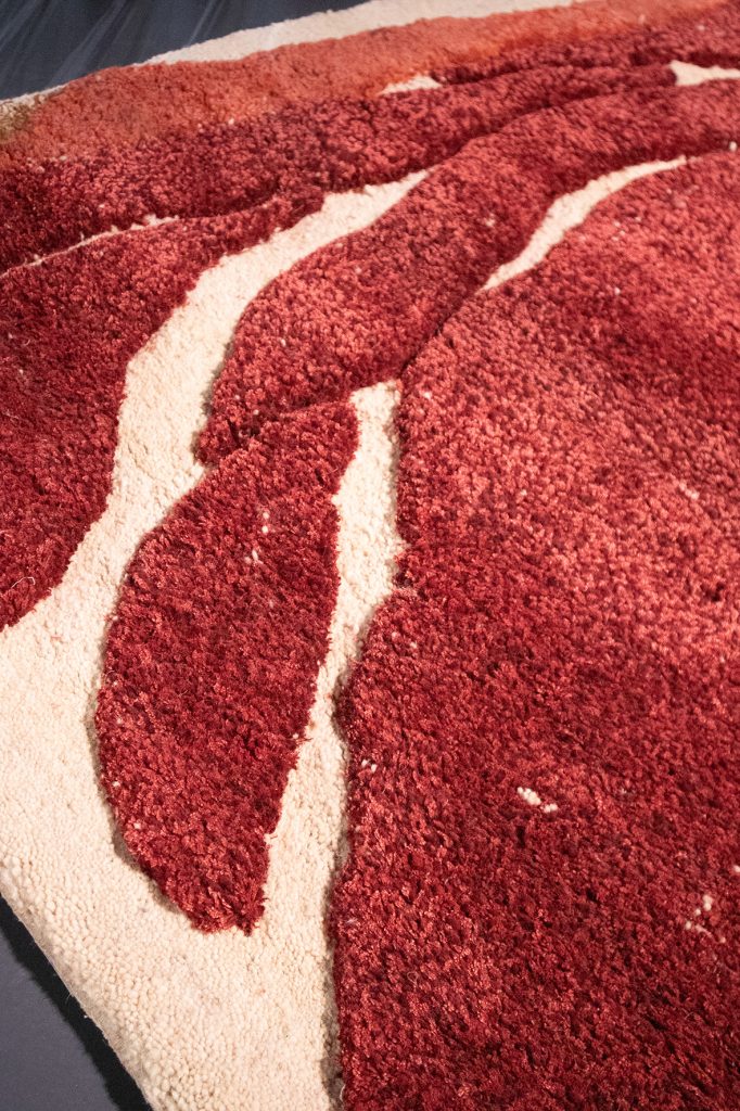 Le projet se prolonge par la création d’une œuvre textile originale réalisée avec Jaipur Rugs : une retranscription de son dessin original, tissée à la main avec de la laine et de la soie de bambou. Ce passage du dessin au textile, du pastel au point noué, achève le cycle de création : les lissières deviennent à la fois sujets, représentations et actrices de l’œuvre. Entre art contemporain et tradition artisanale, Elvira Voynarovska célèbre la circularité du geste et la transmission d’un patrimoine vivant.