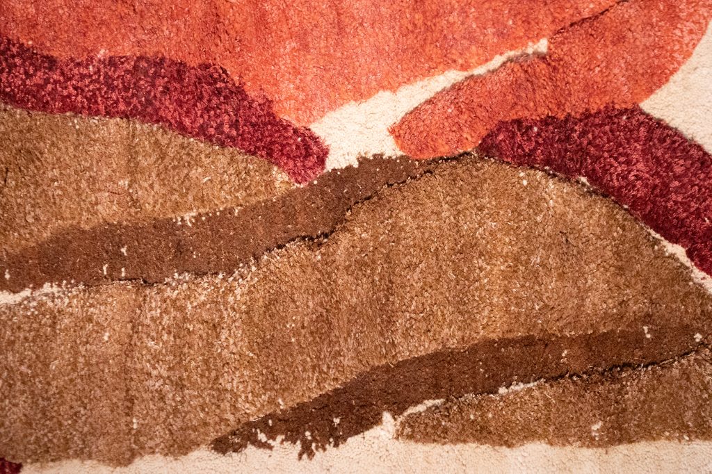 Œuvre textile réalisée au point noué avec de la laine et de la soie de bambou,